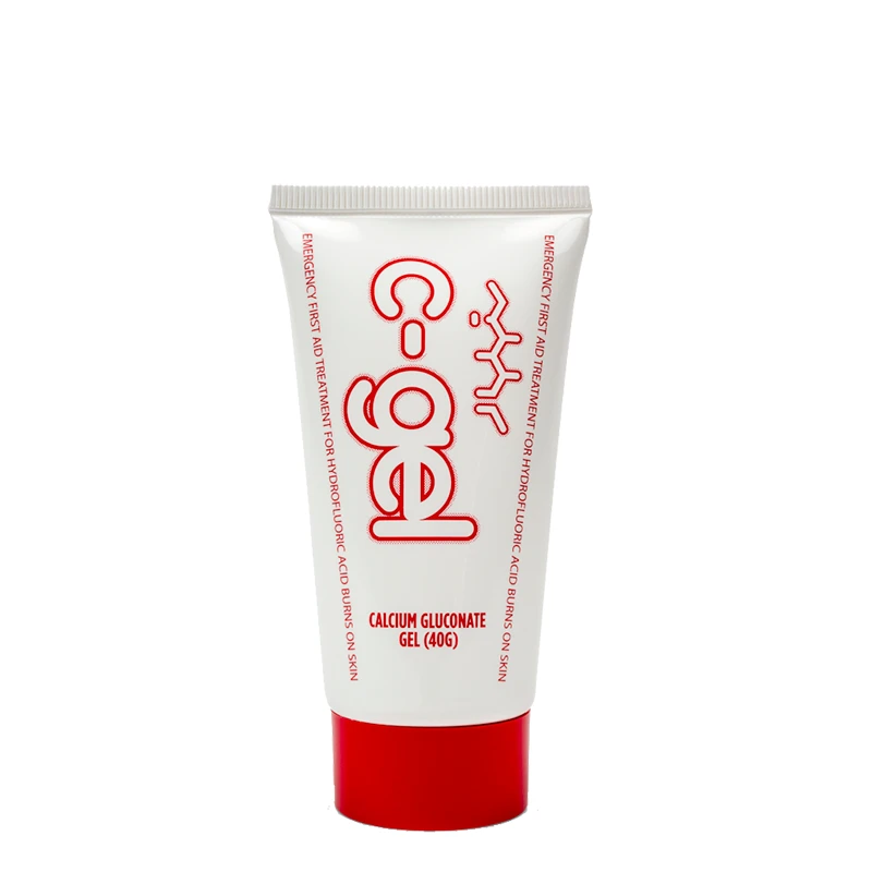 Kalciumglukonat 40 g gel skyddar huden mot fluorvätesyra och bör alltid finnas nära till hands vid kemikaliehantering.